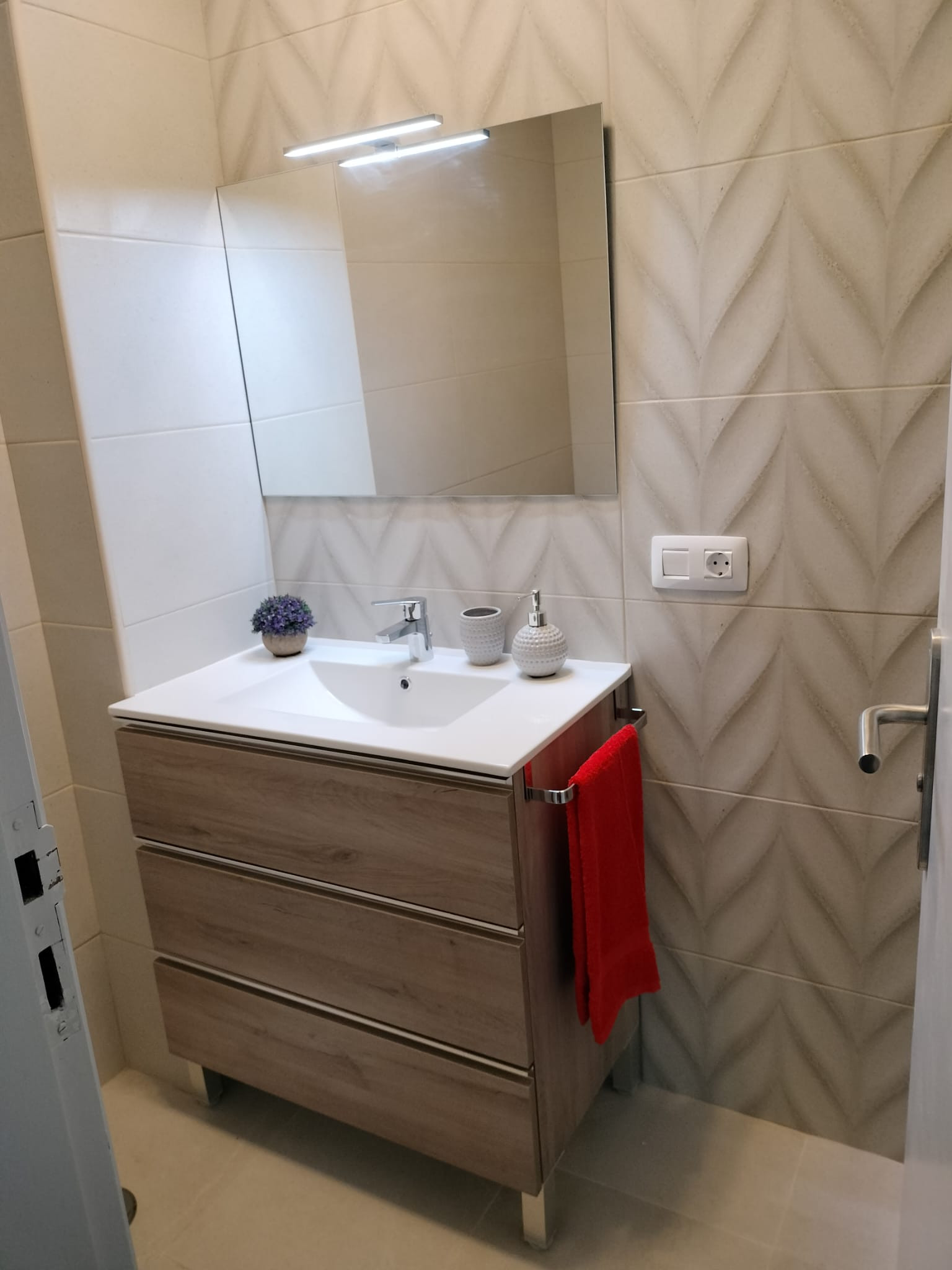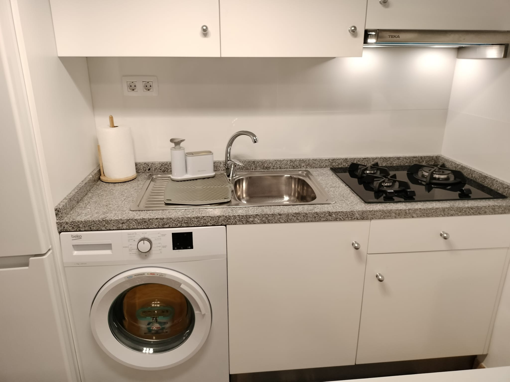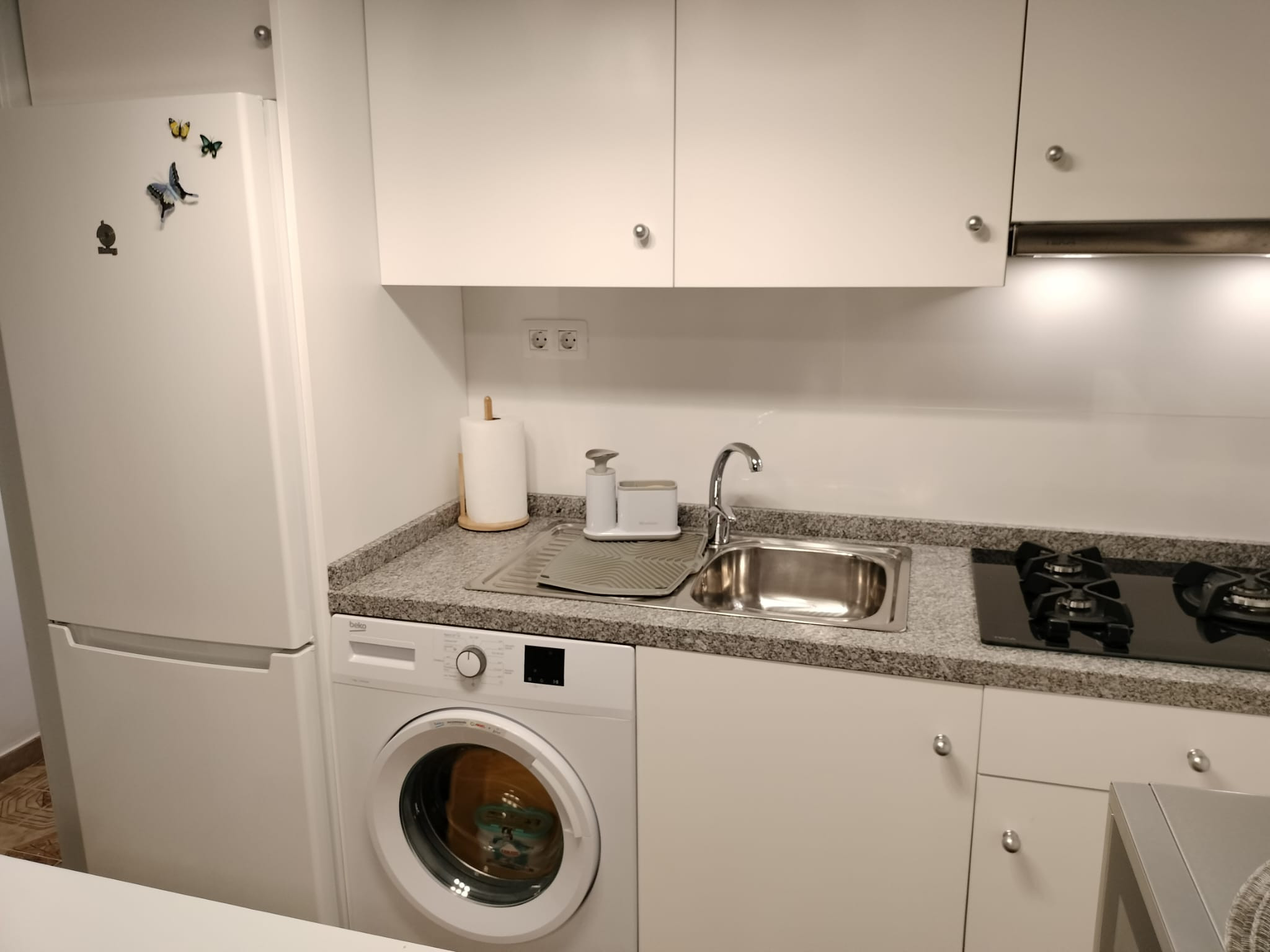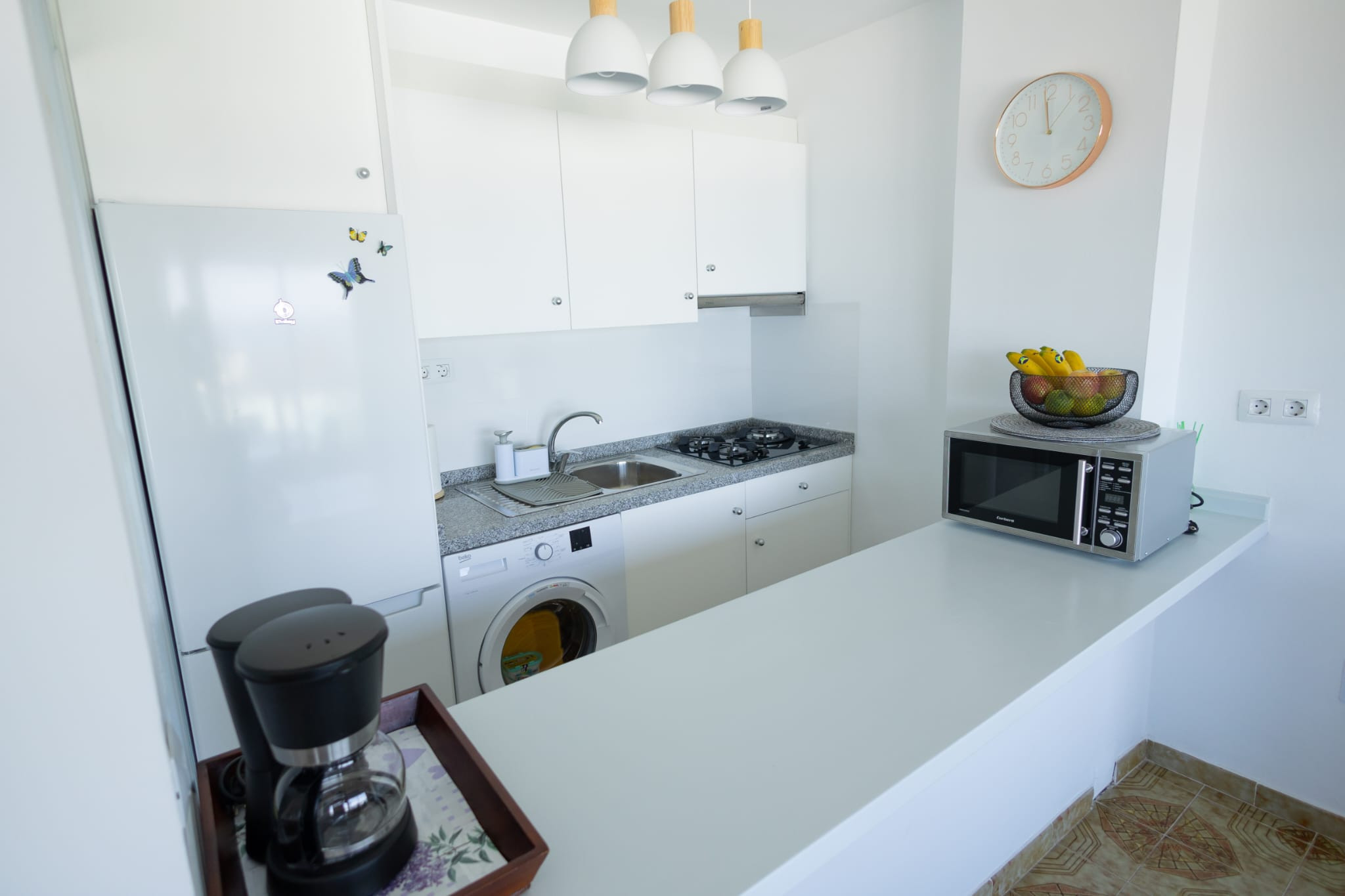 El interior ofrece dos dormitorios cómodos: uno con cama matrimonial y otro con cama individual, permitiendo alojar hasta 3 personas con total comodidad. La vivienda está completamente equipada con cocina americana, WiFi, radiadores eléctricos, plancha y una cocina totalmente funcional con electrodomésticos como nevera, lavadora, lavavajillas, microondas, cafetera y otros utensilios que harán tu estancia más conveniente.