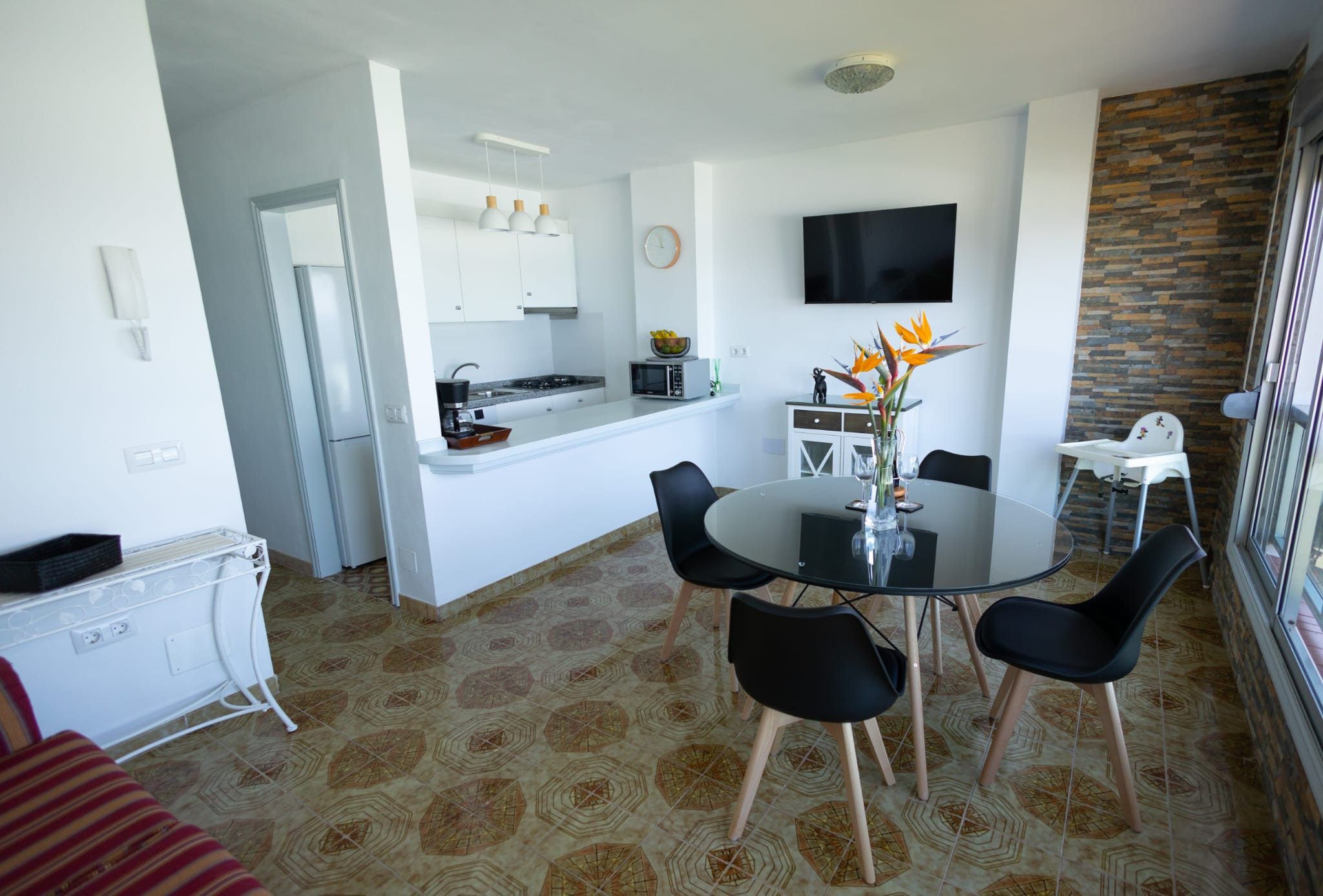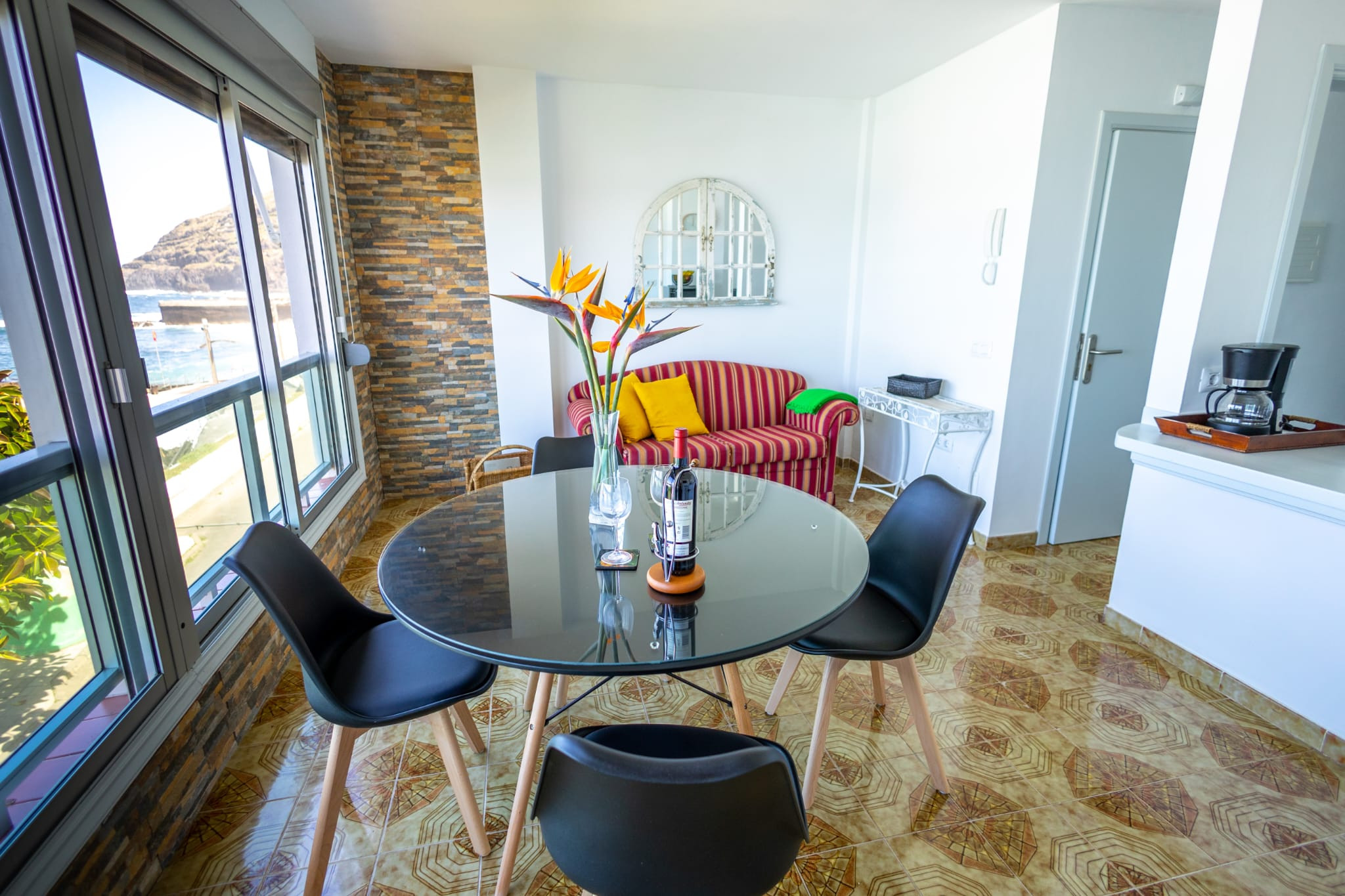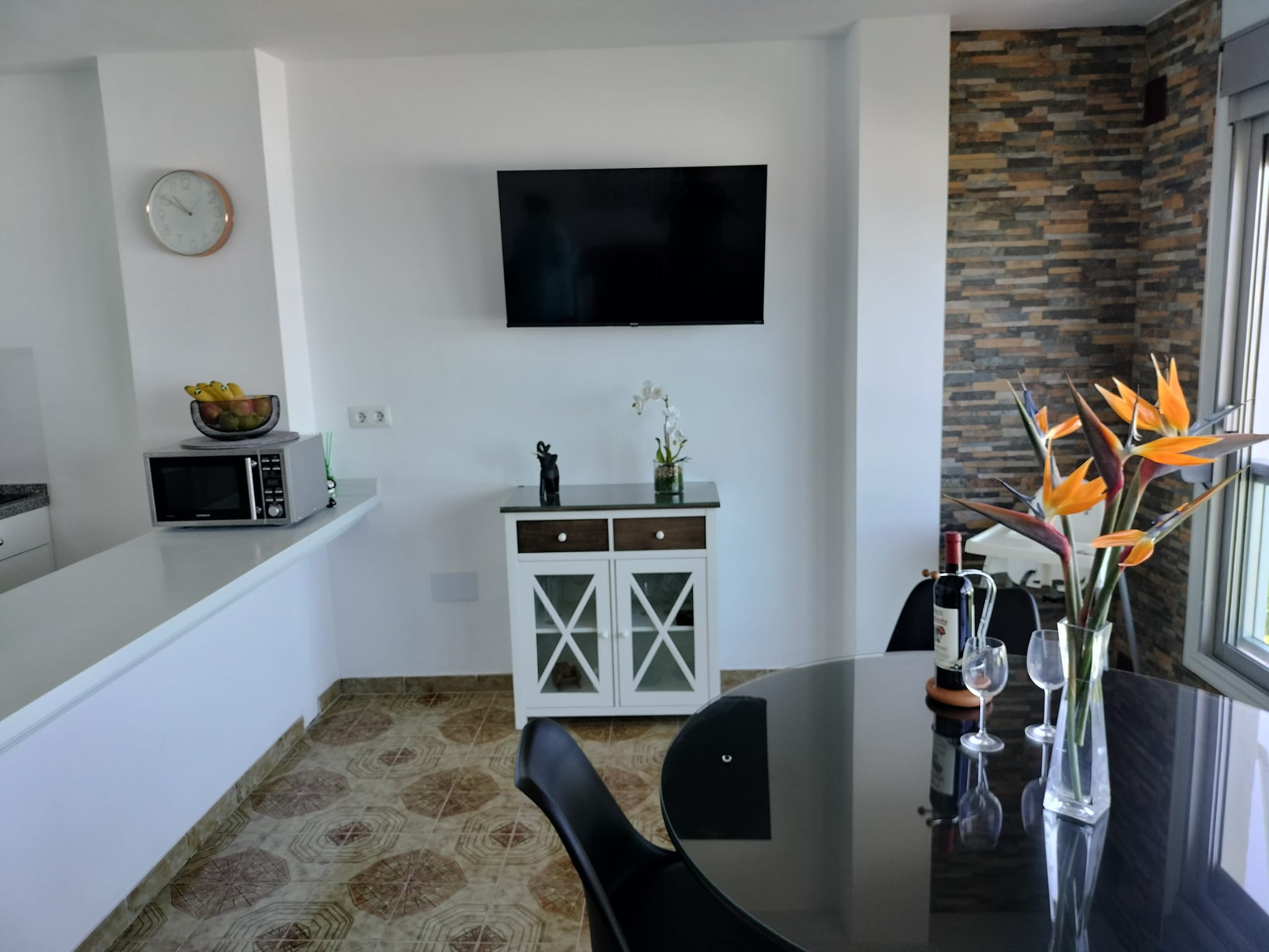 La propiedad cuenta con una amplia terraza de 44 metros cuadrados que se convierte en el espacio perfecto para disfrutar de momentos únicos al aire libre, con vistas panorámicas al mar que te permitirán deleitarte con los atardeceres canarios. La ubicación es privilegiada, situándose cerca de la playa, a solo 200 metros de una hermosa playa de arena y a 10 metros de la pintoresca Playa El Pris con su piscina natural.